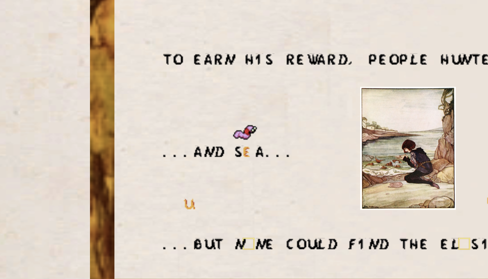 We had envisioned something impressive with the player changing the story, but as development continued we learned about scoping and timelines: our coder ran out of time, so I focused on finding us public domain images and twisting together a concept of a thing that would work with the functions we had coded. The result is kinda cute.